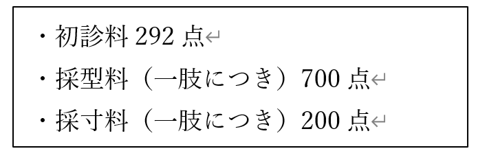 初診料292点 + 採型料700点 = 992点