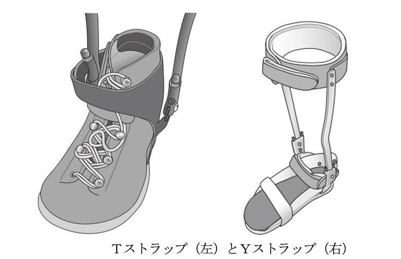 スラップには、TストラップとYストラップがあり、支柱に巻き付けて足部を矯正するために用いられます。