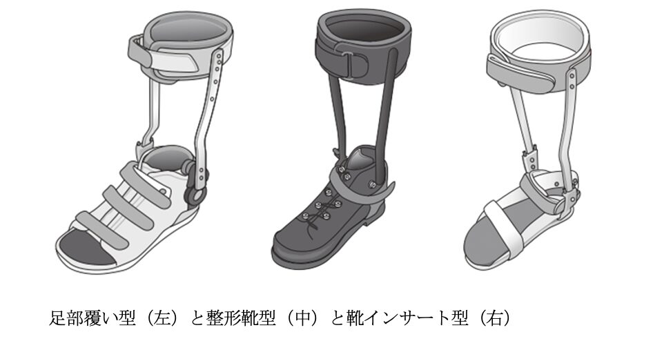 足部は、大きく分けて3つの種類があります。足部覆い型、整形靴型、靴インサート型があり、生活環境や使用場面に応じて選択されます。