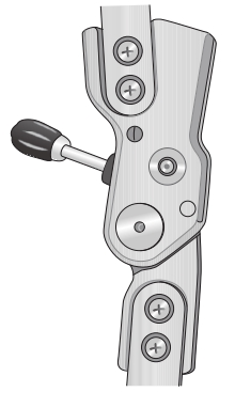 【特徴】固定ネジで膝の可動域を任意で制限し、リングを用いることで設定した角度で固定できる