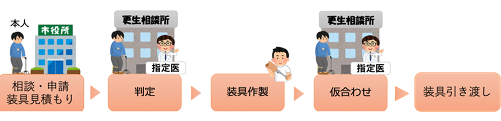 - 更生相談所に行き装具の判定を受ける(具体的な場所は、後述)