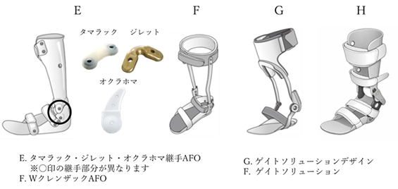 Wクレンザック(ロッド)は今回比較した装具の中で最も強い制動力を持ちます。一方でタマラックやジレットは非常に柔らかく、足部の自由度を優先した設計になっています。特に、タマラックAFOは継ぎ手がシリコンであり、足関節の内反が強い症例に対しては使用に注意が必要です。