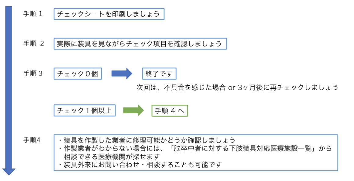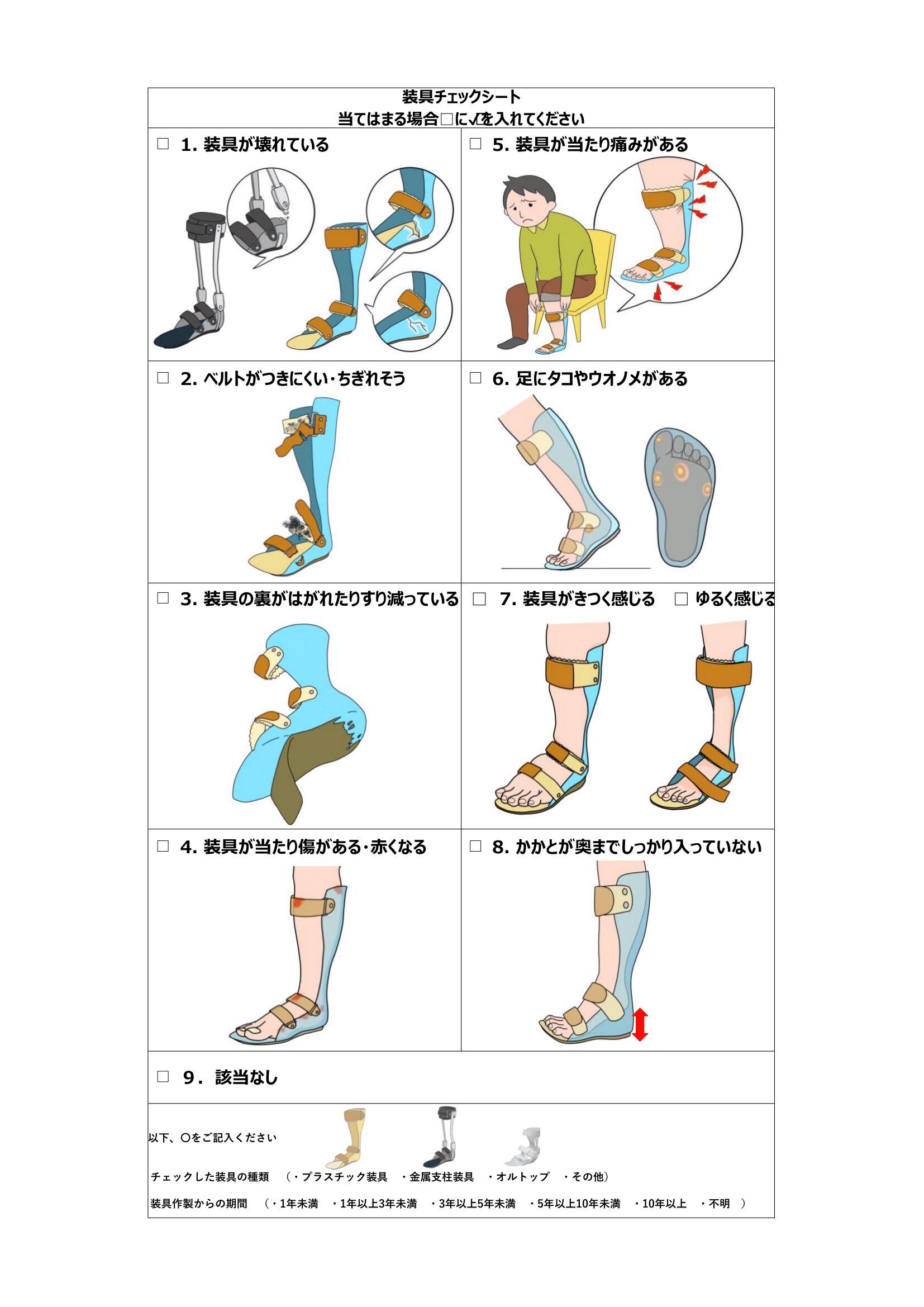 このチェックシートは装具が壊れているのか、対処が必要かどうかを判断できるシートです。