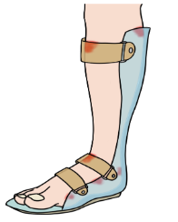 装具は皮膚に密着しているため、当たって傷ができたり、赤くなっている場合があります。 - 装具が当たり痛みがある
