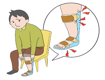 足の裏や装具と接触している場所は皮膚が硬くなるなどの問題が生じることがあります。 - 装具がきつく感じる・ゆるく感じる