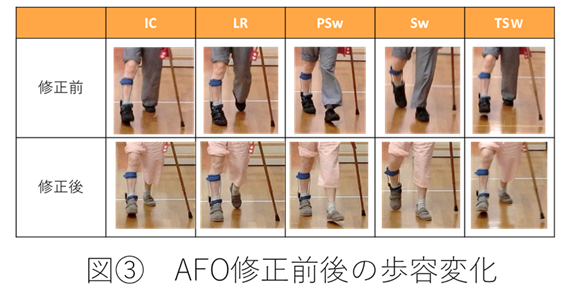 20回目のボツリヌス治療の際に両側支柱付きAFO(油圧制動足継手)を再製作したところ、再製作したAFOでは荷重応答期(LR)で足関節が過度に内反していました。